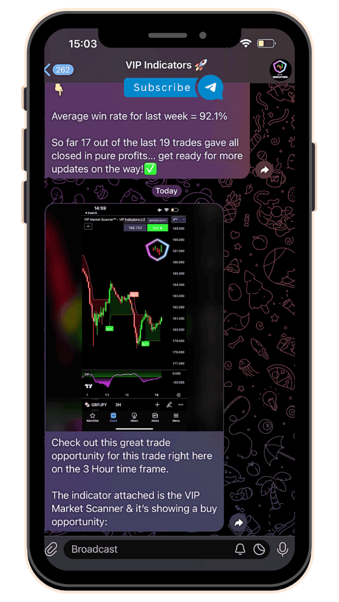 With the private telegram group, you'll receive daily signals and alerts revealing the most profitable trading opportunities that the indicators are showing for the day.